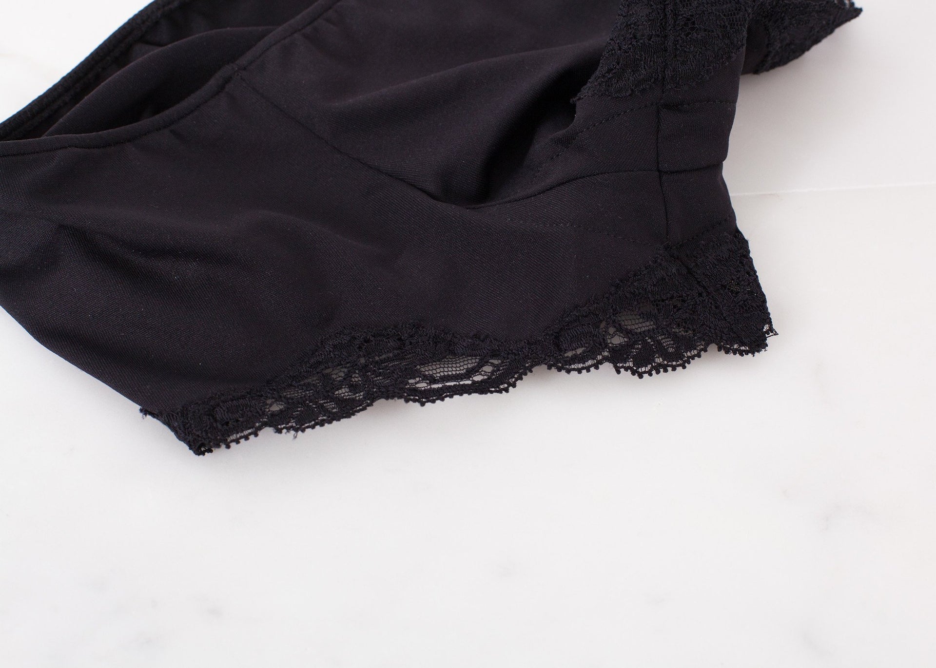 The Delicious Hipster offers a satisfactory amount of coverage and comfort. Color Black. 90% Nylon, 10% Lycra. Made in U.S.A.